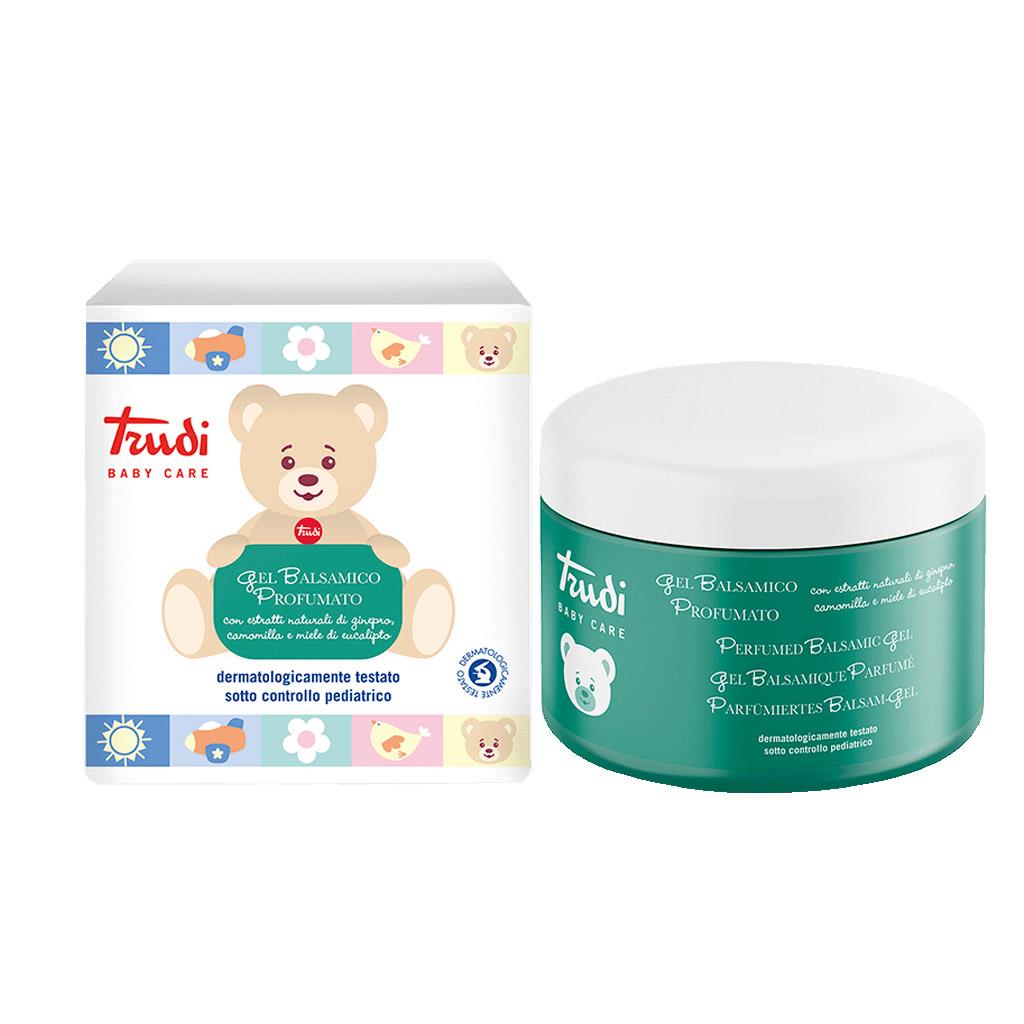 Il Gel Balsamico Profumato Trudi Baby Care contiene estratti naturali ed olii essenziali dalle proprietà balsamiche; la loro inalazione, favorita da un delicato massaggio, mantiene libere le vie respiratorie e facilita la nanna dei più piccoli per tutta la notte.