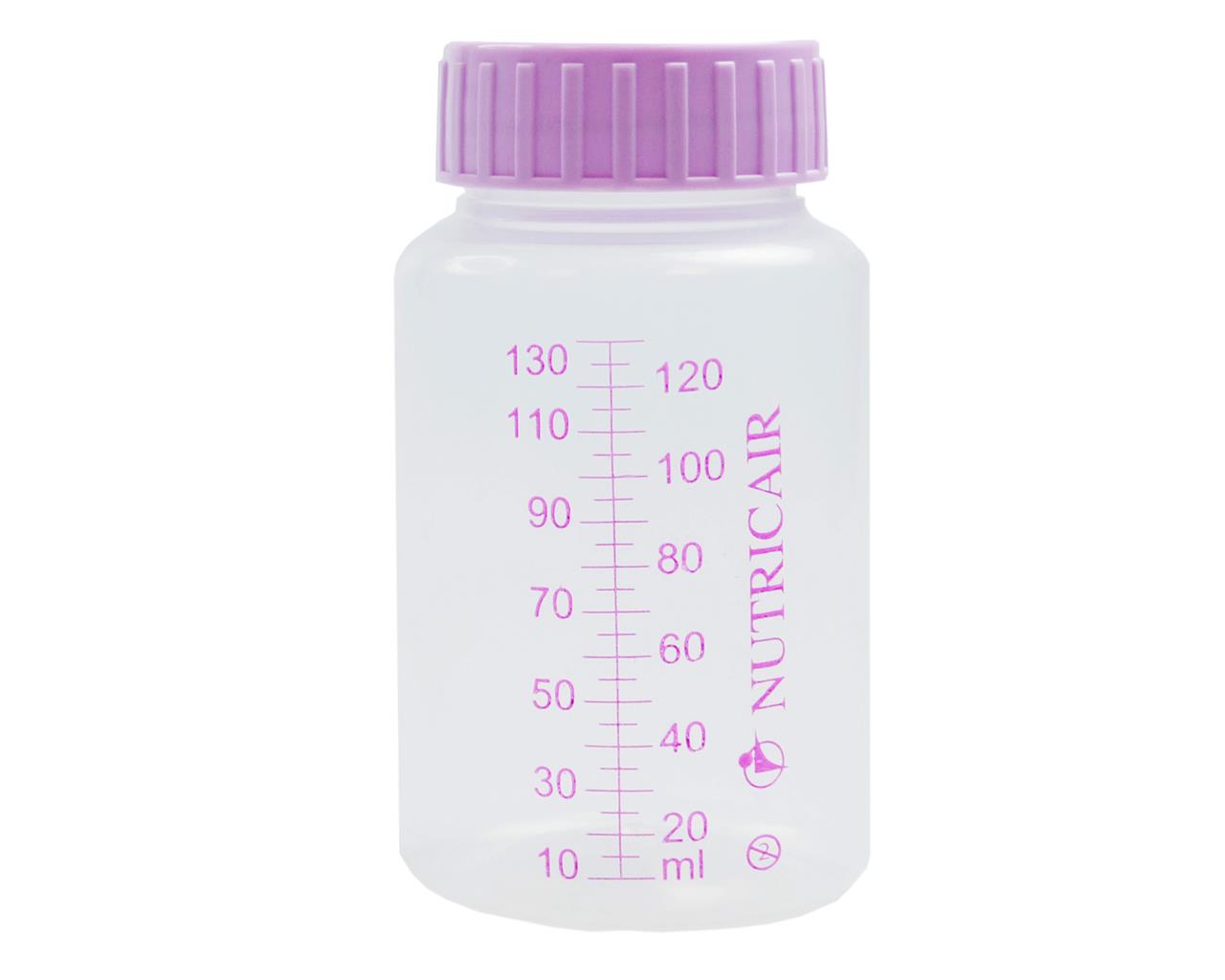Bottiglia biberon con tappo, sterile e monouso, con capacità 130 ml.