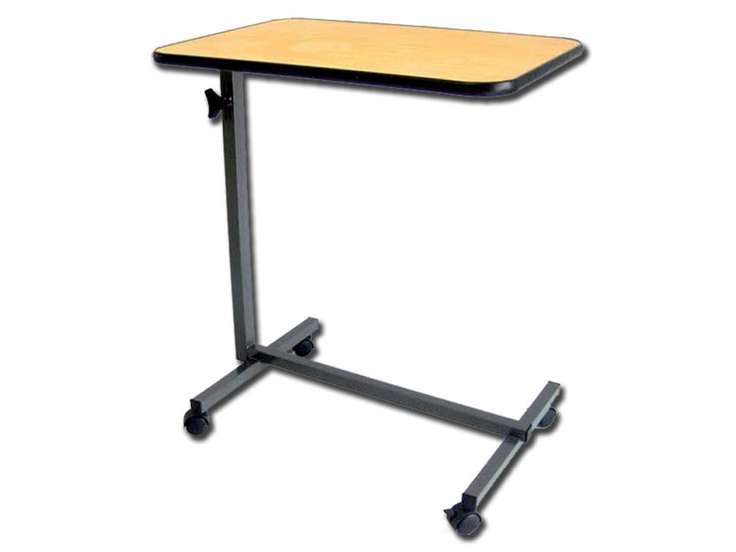 Tavolino servitore con struttura in acciaio e pannello ad alta densità. Base con 4 rotelle removibili Ø 40 mm (2.5”), di cui 2 con freno. Altezza e angolazione regolabili. Fornito smontato.