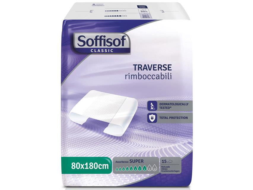 Soffisof Traverse Super è una traversa assorbente salvaletto indicata per incontinenza urinaria da media a grave.