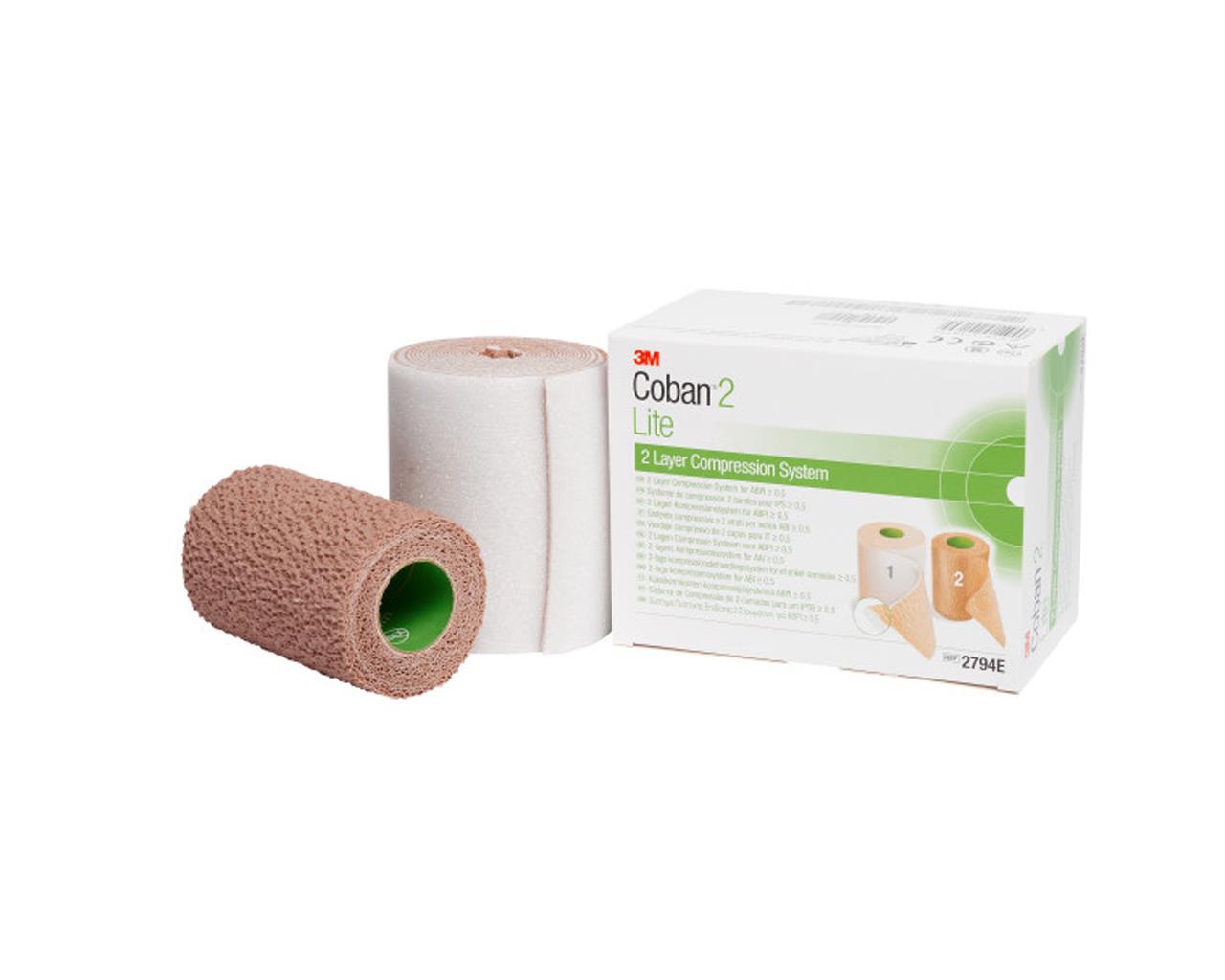 3M™ Coban 2™ è un kit contenente una benda comfort in schiuma di poliuretano e una benda compressiva coesiva a corta estensione in TNT.