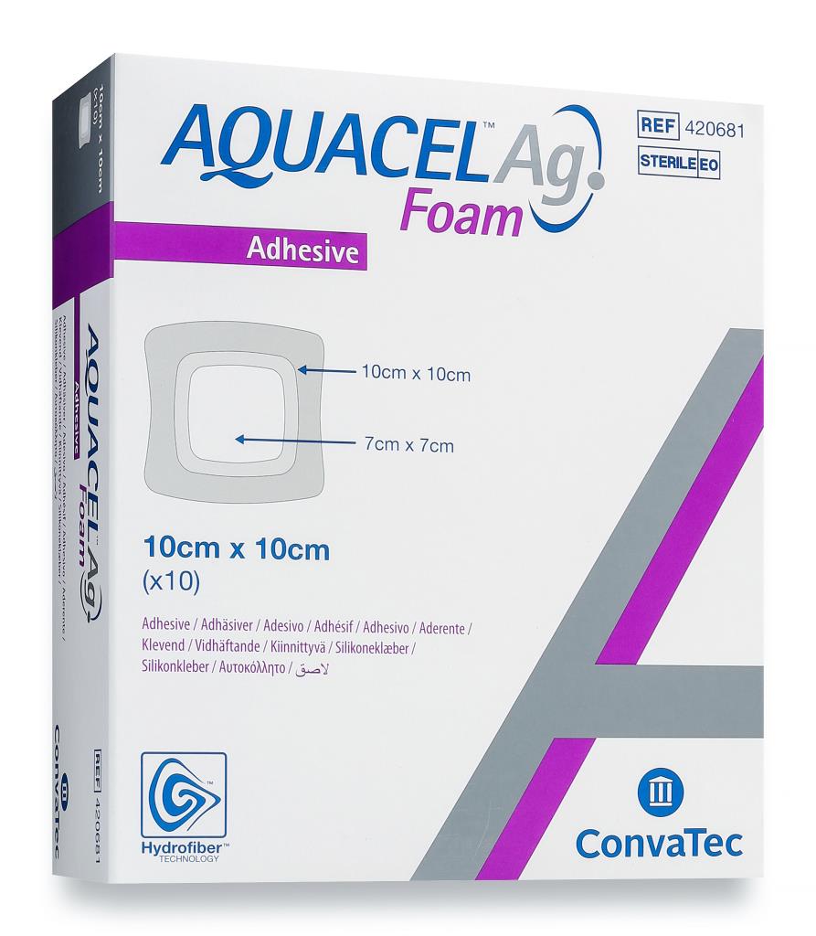 La medicazione può essere mantenuta in situ fino a 7 giorni o rimossa prima se clinicamente necessario per saturazione completa o altra esigenza. Aquacel® Foam Ag formato adesivo può essere utilizzata come medicazione primaria o secondaria in associazione con altri prodotti e può essere ritagliata per creare forme e misure diverse secondo le indicazioni dell’operatore sanitario. Sostituire la medicazione quando il cambio di colore, dovuto all'assorbimento dell'essudato, sta per raggiungere il margine esterno del tampone.