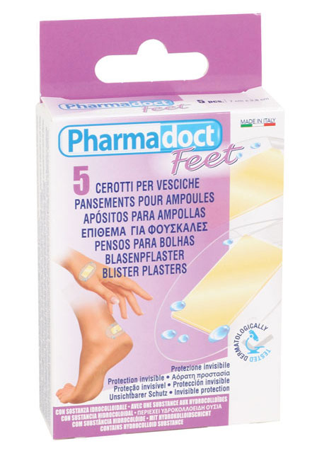 Cerotti per vesciche della linea Pharmadoct. Confezionati in blister.