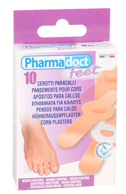 Paracalli con disco centrale della linea Pharmadoct. Confezionati in blister.