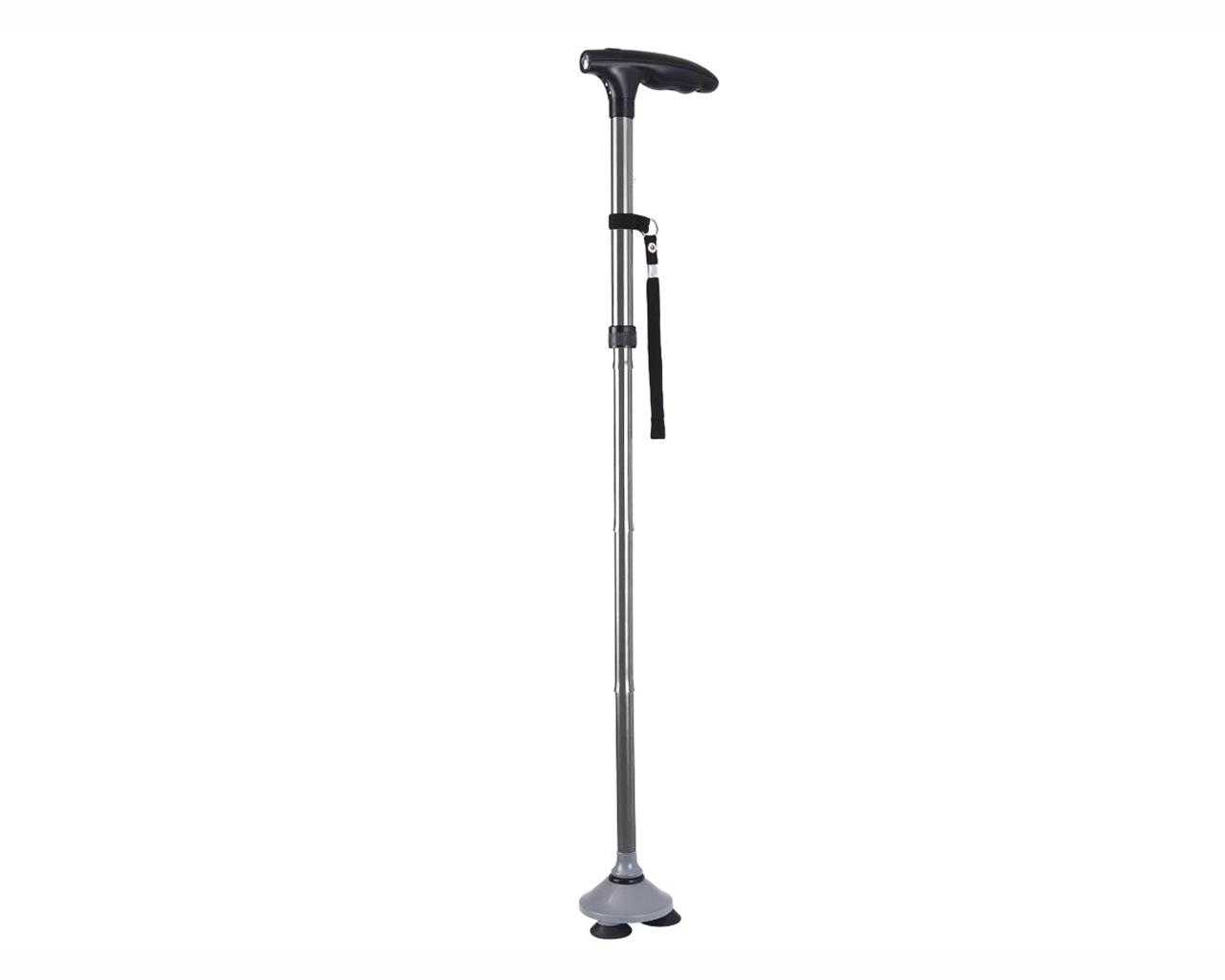 Resistente, pieghevole, con luce integrata, testa pivottante e 3 piedini antiscivolo alla base.