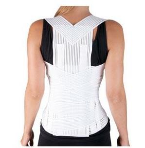 Il corsetto è realizzato in tessuto elastico traspirante, gli spallacci elastici sono dotati di fasce di chiusura a velcro.
