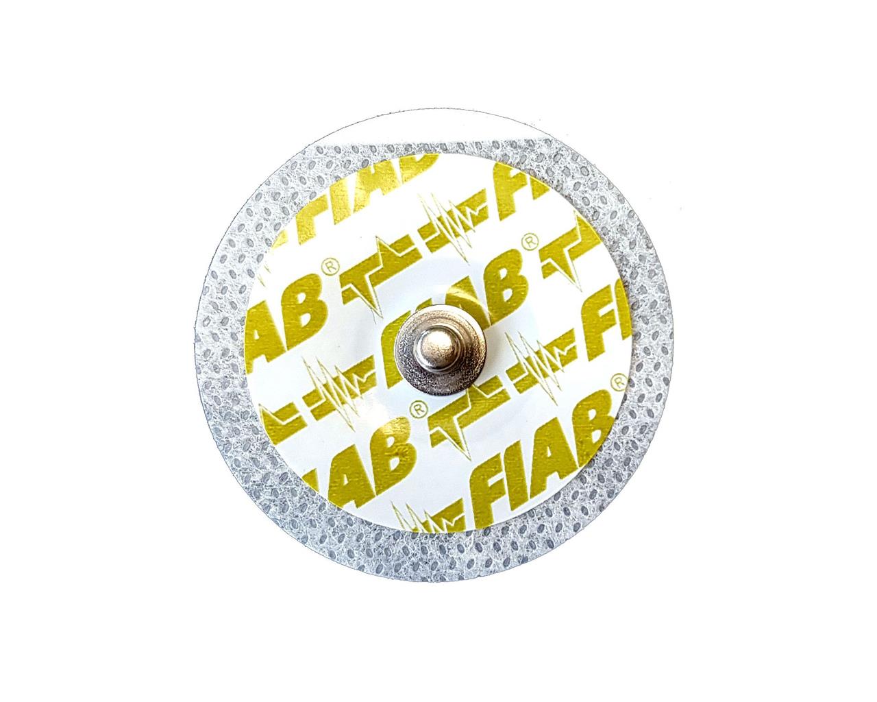 Elettrodo monouso per ECG in TNT in gel solido con sensore in Ag/AgCL (Argento/Argento Cloruro) e clip in acciaio. La superficie esterna è in TNT e il prodotto è completamente privo di lattice.