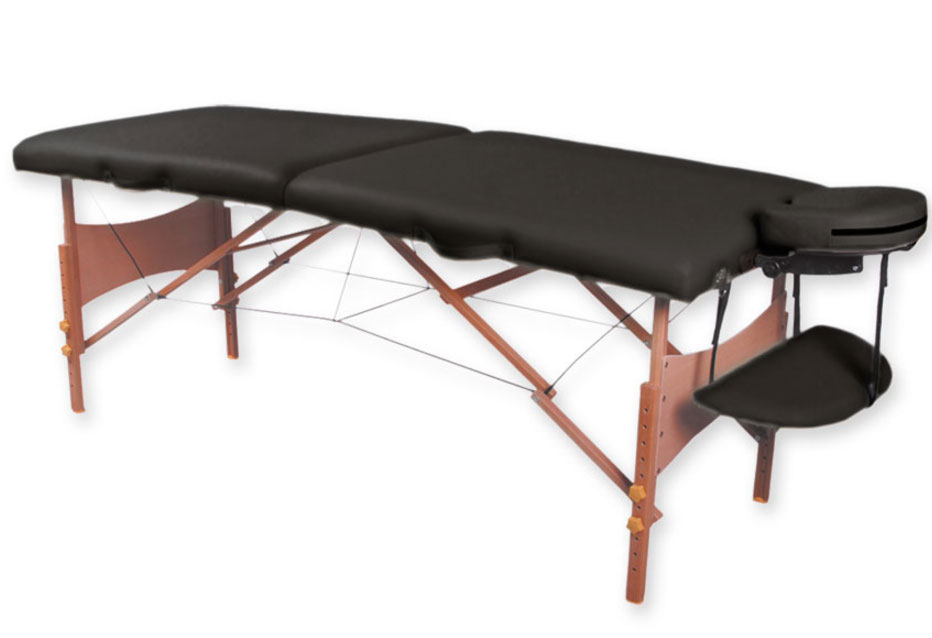 Lettini da massaggio in legno pieghevoli a 2 sezioni e ad altezza regolabile. Intelaiatura in faggio proveniente dalla Germania e copertura in vinile PVC con imbottitura di 5 cm di spessore. I lettini sono dotati di poggiatesta, reggibraccia, foro naso-bocca e borsa per il trasporto.