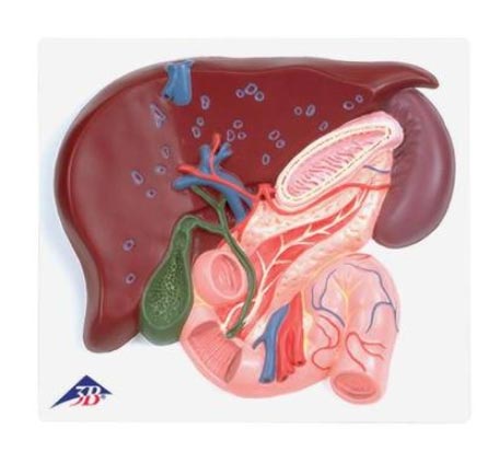 Eccellente modello in rilievo di fegato su tavola che mostra:
