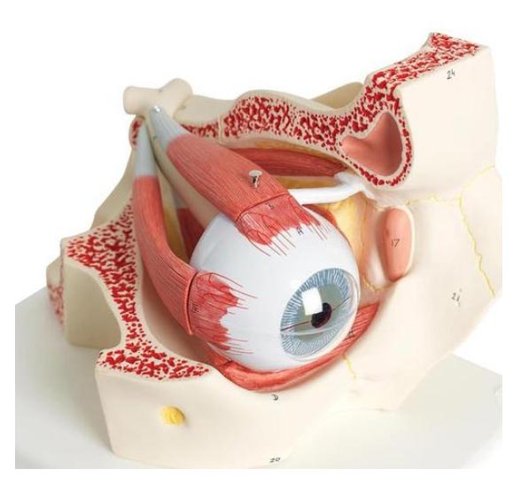 Modello di occhio nella cavità oculare, ingrandito 3 volte, in 7 parti.