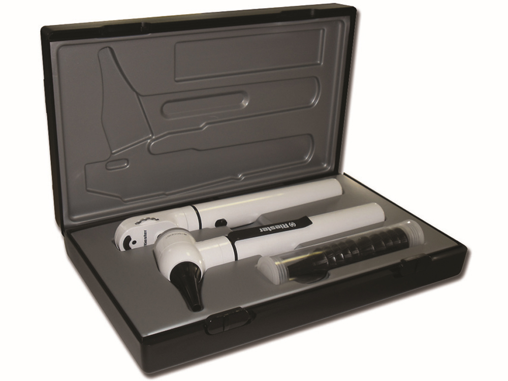 Otoscopio F.O. e Oftalmoscopio RIESTER E-Scope® LED 3,7 V con kit speculum monouso in custodia rigida.
