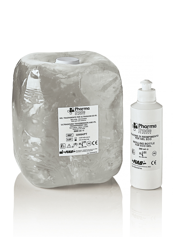 Gel ad elevata viscosità utilizzabile sia per ultrasuoni che per luce pulsata. Esente da sali, favorisce il movimento della sonda. Completamente idrosolubile, resistente all'essiccazione, inodore, di facile rimozione. Non macchia, non unge, non ionizza e non si ossida nel tempo.